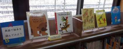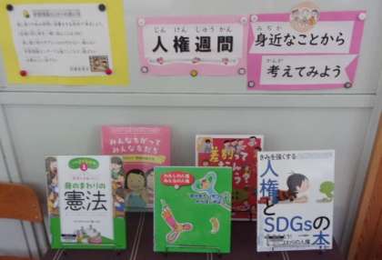 学校図書館前の廊下には、「人権週間」「English Week」に合わせ、学校司書さんのおすすめの本がありますよ!