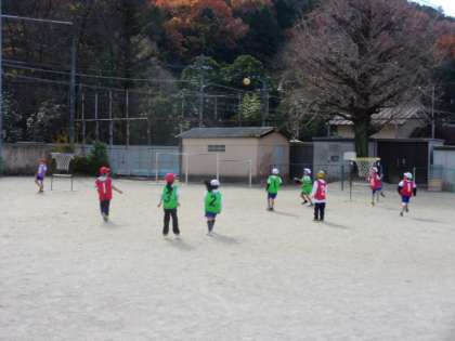 2年生は、体育です。この時は晴れ間があって温かかったのですが、お昼前からしぐれています。