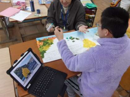 3組は図工の作品づくりです。きり絵に取り組んでいます。