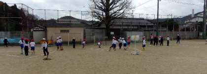 1年生は、ころがしドッヂボール。曇って冷え込んでいますが、元気に活動しています。