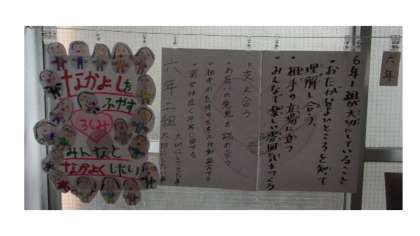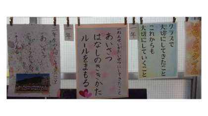 人権週間の朝会後、「クラスで大切にしてきたことと、これから大切にしたいこと」をクラスで振り返りをし、校長室前の廊下に掲示しています。