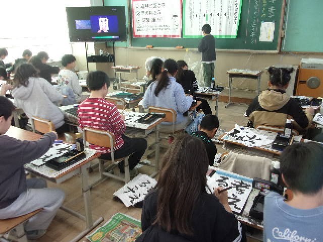 5年生は学年で、書写をしていました。