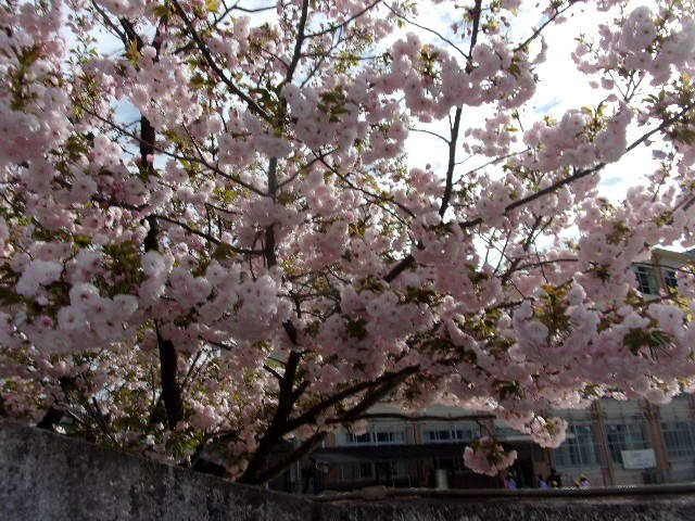 正門の桜はちょうど満開で、1年生の初登校を喜んでいるようでした。