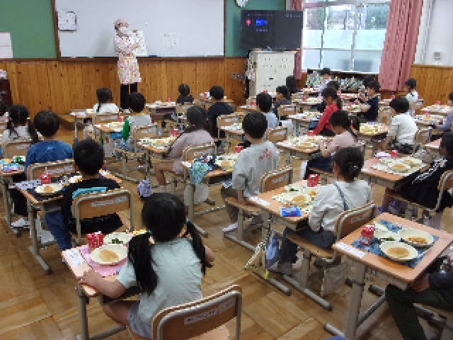 今日から給食の開始です。1年生は、初めての給食。