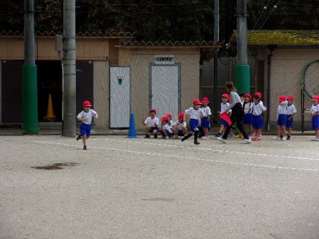 1年生は・・・、体育の学習で運動場にいました。