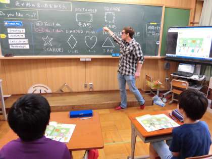 今日は,アメリカ人のFS(外国人指導助手)さんの来校日。習いたての“Do you like 〜?”という表現を使って,好きな物をインタビューしました。毎回,恒例の聞き取りクイズにも挑戦し,楽しい時間を過ごしました。