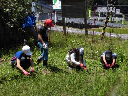 イネは順調に大きくなっています。雑草も伸びてきます。最近は,草取りの方が大変ですが,これも「おいしい静原米」を作るために,頑張っています。