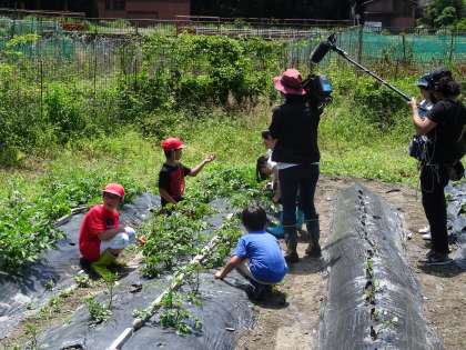 今日の3校時,4年生といっしょに畑に行きました。今日はNHKの取材もあり,子どもたちは張り切っていました。(でも,恥ずかしいので,カメラからは逃げていました。)