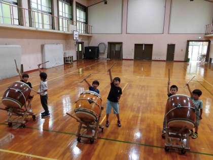 毎週金曜日に活動している太鼓部。今回は,今まで練習してきた演奏を録音して,うまくできているかを自分達の目と耳で確かめました。今までの練習の成果か,みんなの音が合っていることを確認できました。