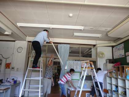 日曜参観の午後,学校の環境整備をしました。運動場の草引き,教室の蛍光灯と反射板の拭き掃除をしました。子どもたち,保護者,教職員みんなで,安全で快適な学習環境にしようと頑張りました。