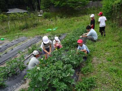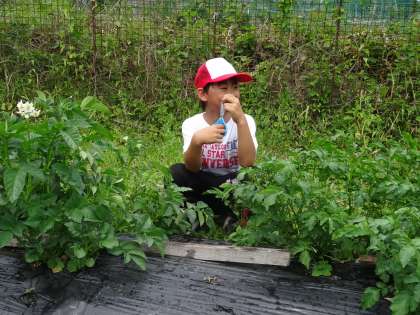 今日の5校時は,4年生といっしょに畑に行きました。ジャガイモの成長がすごく,紫色や白色の花がたくさん咲いていました。