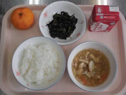 ごはん 牛乳 あんかけごはん(具) 小松菜とひじきのいためもの みかん