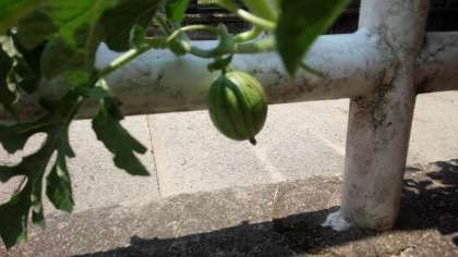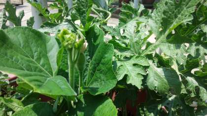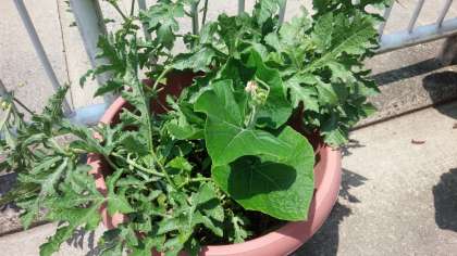 2年生が毎朝お世話をしている野菜に、不思議なことが起こりました。毎日観察していて、すでに小さな実もつけ始めているスイカなのですが、どう見ても全く違う形の葉が大きく育ち、花も咲かせているのです。不思議に思って詳しい方にお聞きすると、野菜の苗を、大きく丈夫に育てるために、根や茎がしっかりした違う野菜の茎に、育てたい野菜を接ぎ木して売られているそうです。調べていただくと、スイカの根元はなんと、かんぴょうの茎だそうです。謎が解けて、これからどうするか、育てている子どもと相談したいと思います。