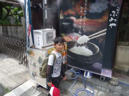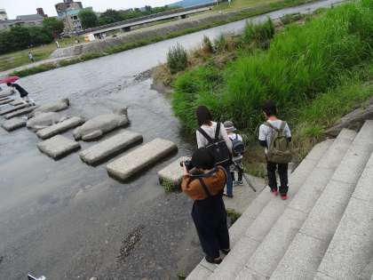 大文字山を下山し,銀閣寺のお店を見学しながらミストを浴び,出町柳へ移動。時間があったので亀石のところまでやってきました。