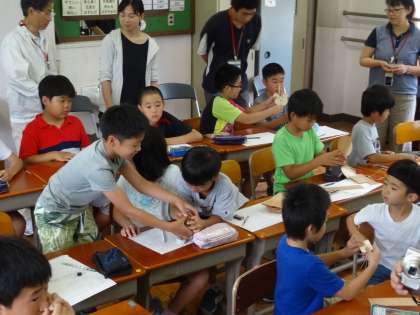 今日の3・4校時は,講師に松田先生をお迎えし,日本の山の現状を教えてもらったり,間伐材を利用した商品を見せてもらったりして,静原校の商品開発のヒントをいただきました。