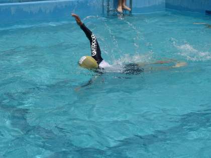 今日の3・4校時,お天気は少し悪かったのですが水温が26度あり,気温もどんどん高くなって,全然寒くはありませんでした。