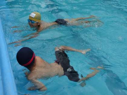 今日の3年生は,平泳ぎ25m,クロールも50m行けました。平泳ぎの足の形を,4年生に教わっていましたよ。