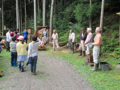 毎年,地域の方にご協力いただき間伐体験を行っています。間伐をするにあたり,地域の方から,「間伐でも命ある木を切り倒すのだから,すべてを活用してほしい」とのお話がありました。