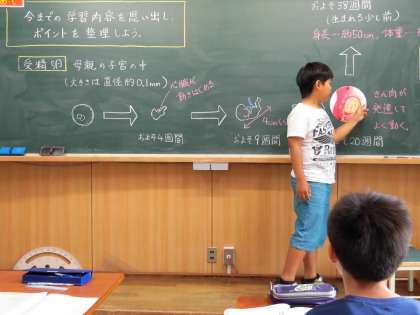「人のたんじょう」について,自分たちが調べたことを伝え合いました。さらに,「メダカのたんじょう」と「人のたんじょう」の流れをくらべることで,似ていること,異なることも明らかにしていきました。調べていくうちに,分かったことも増えてますが,不思議に思うことも増えていきます…。