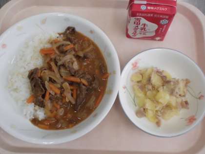 玄米ごはん 牛乳 ハッシュドビーフ ジャーマンポテト