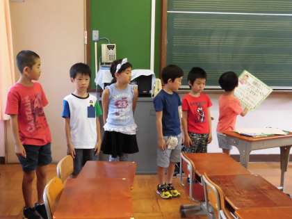 今回の食育発表は,2年生。食事の際に置く食器の配置について,調べたことを発表しました。どうして左手前がご飯で,右手前が汁物なのかなど,理由を入れて詳しく解説していました。発表を受けて,「家でも意識して,正しい食器のならべ方にしていきます。」という感想を伝える児童もいました。もちろん,私の家庭でも,今日からは正しいならべ方をします!!