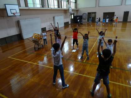 交流給食の後の昼休みには,体育館で赤白に分かれて,運動会に向けて初の応援練習を行いました。声の台方を応援団長から教えてもらったり,2拍子の練習をしたりしました。