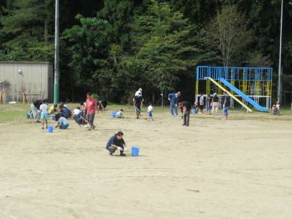運動会に向けて,校庭の草引きがありました。トラックの草が,ほとんどなくなりました。おつかれさまでした。