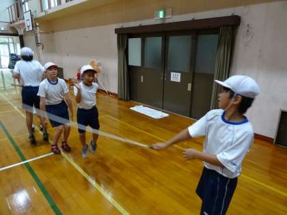 4時間目は,3〜6年のバラエティー走の練習をしました。馬跳びや台風の目・大縄跳びなど,楽しそうにやっていました。