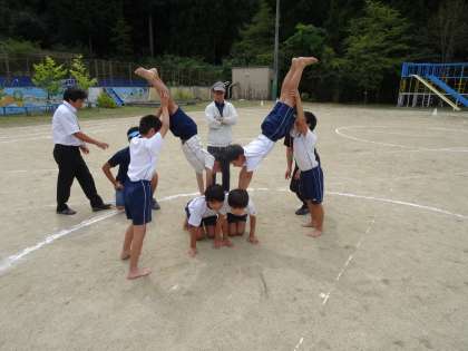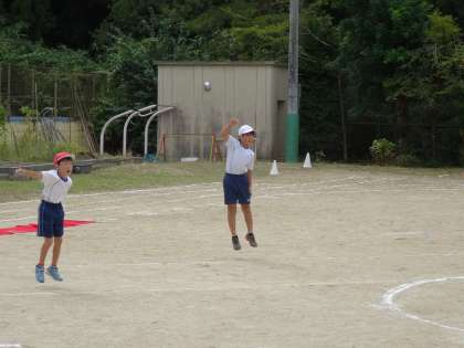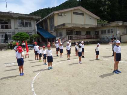 今日の3・4校時も全校体育がありました。今日は入・退場の練習,開・閉会式,全校演技,応援練習をしました。