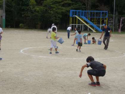 当日,団体演技では裸足になるところがあるので,けがをしないために,全校での石ひろいです。