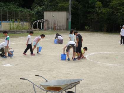 運動会に向けて,今日は草抜きではなく,石ひろいをしました。
