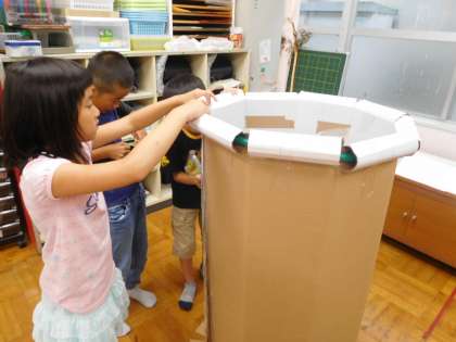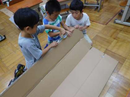 2年生の障害物競争で使うトンネルを作りました。運動会まであと約一週間。当日が楽しみですね。
