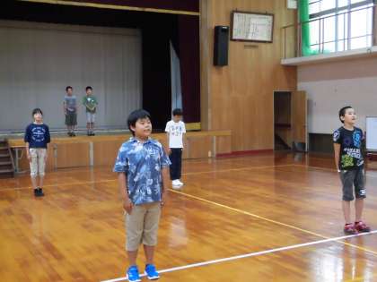 昼休みの体育館には,式の台詞を練習する子どもたちの姿が。気合いも十分。きびきび,はきはきと活動する姿は,素晴らしいの一言に尽きます。