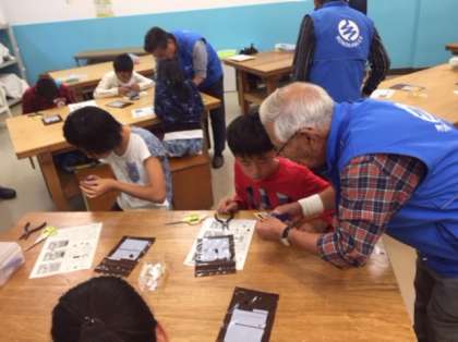 後半はオルゴールを作りました。細かい電子部品の組み合わせできれいな音がなることにモノづくりの不思議や面白さを感じられたようです。ソーラー電池で鳴るので,学校に帰ってからもたくさん鳴らしていました。