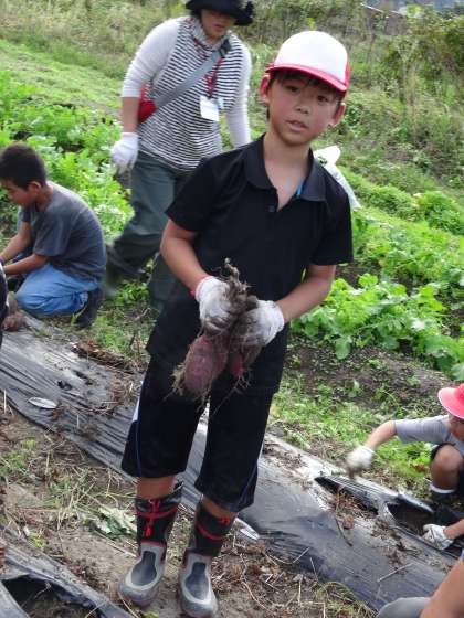 今日の5校時は,全校でサツマイモを掘りに行きました。でっかいイモや長いイモ,かわいいイモなどいろんなサツマイモが取れました。