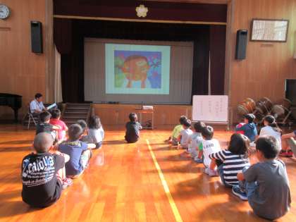 始業式では,校長先生のお話の中で,『川のいのち』という絵本の読み聞かせがありました。この絵本から,「いのち」「目標を持ち,それに向かってがんばること」などについて考えました。