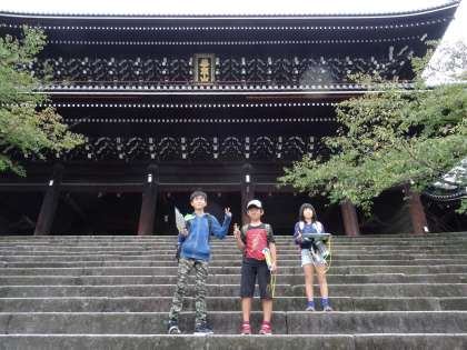 昨日,あやしい天候の中,秋の遠足に行きました。京都バスと市バスに乗って知恩院へ着き,さっそくグループ行動。途中,臨時のリーダーになって協力して活動していました。知恩院の中では『千姫のお墓』も見つけ,少し興奮しました。