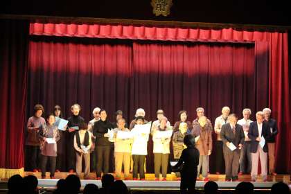PTAと教職員の合唱「翼をください」「ビリーブ」、シルバーコーラス「いつでも夢を」「上を向いて歩こう」、3・4年劇「タイムスリップ〜大切なものとは〜」