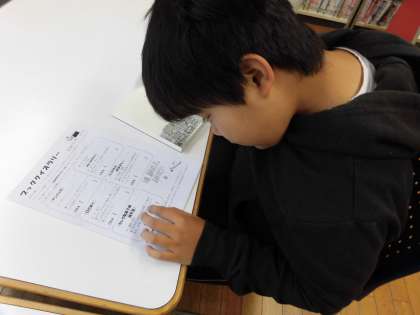 静原小学校では,本日より読書週間に入ります。そこで,学校司書さん自作のブック・ラリーのクイズを解いたり,椋鳩十さんの作品を読んだりと読書を楽しんでいます。