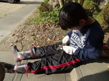 今日の5・6時間目は,総合的な学習で4年生と共に商品づくりを行いました。コマの回りを確認するグループ,木をきれいにやすりをかけているグループ,木を焼いて磨きをかけているグループなどさまざまでしたが,順調に進んでいるかな・・・?
