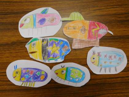 丸ちゃん、きなちゃん、しょうくん、ぺこたん、みのりちゃん、かいりくん・・・それぞれ主人公を決めてお話を作っています。絵本が出来上がるのを楽しみに集中して取り組んでいます。