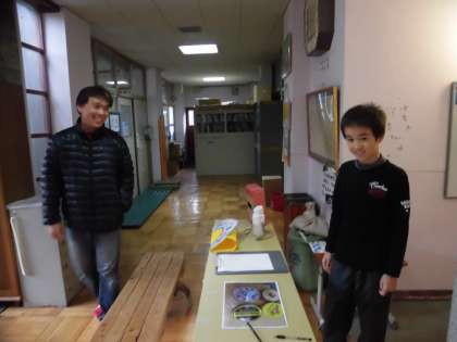 イベントの受付は,緊張の連続です。今までに練習を重ねてきたものの,大人の人相手となると,普段とは勝手がちがいました。それでも,なんとか受付での説明ができると,思わず笑顔に…。
