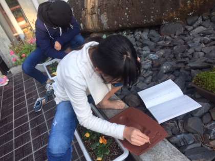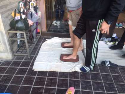 体育館の横には,今までの卒業生の手型がいくつも飾られています。今年度の6年生は足型をとりました。足もすっかり大きくなって大人とそれほど変わらない大きさになりました。