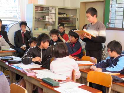 1校時に,「静原タイム」がありました。今日の発表は,2・4年生と学生ボランティアの方の3人でした。
