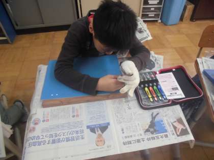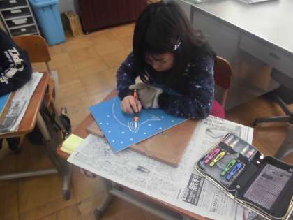 4年生では彫刻刀を使います。