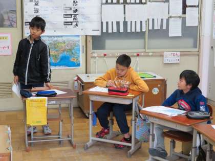 今日は,その振返りをしました。他のブースの良かったところ,自分たちのブースの良かったところと課題,そして学習の感想を発表し合いました。みんな,真剣に考えていました。