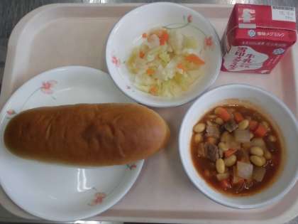 味つけコッペパン 牛乳 ポークビーンズ カリフラワーのホットマリネ