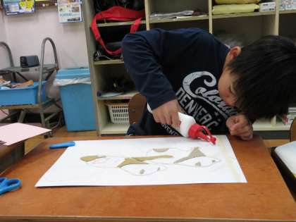 今日の6校時は図工で,紙版画の『いろいろうつして』をやりました。細かい作業をしているのですが,児童はコツコツと取り組んでいます。