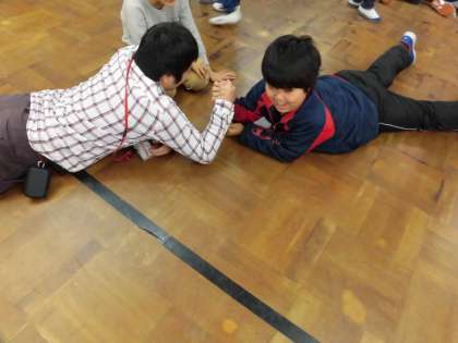 休憩時間に,他校のお友達と遊んだ後には,サンタクロースとトナカイが登場しました。子どもたちもビックリ。そして,子どもたちの気分が最高潮に達しました。