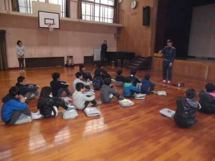 2時間目に全校で避難訓練をしました。地震に伴い,火災が発生したという想定での訓練をしました。揺れを感じたら机の下にもぐり頭を守ること,また防災頭巾を着用することなど,安全な行動を意識して行動しました。